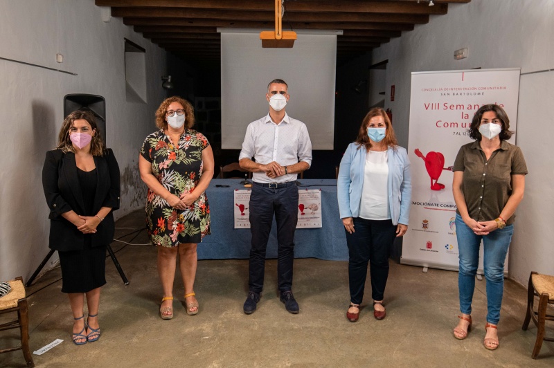 El alcalde de San Bartolomé; Alexis Tejera, la concejala delegada del área de Intervención Comunitaria; Ana María Lopes, la Consejera de Participación Ciudadana del Cabildo Insular de Lanzarote; Paula Corujo, la directora del Área de Salud de Lanzarote; Noelia Umpiérrez y delegada de la Fundación “la Caixa” en Canarias; Yasmina Hormiga han presentado la octava edición de la Semana de la Salud Comunitaria que se desarrollará hasta el próximo 12 de junio en el municipio de San Bartolomé. Todas las intervenciones destacaron la importancia de esta acción, de la promoción de la salud, de la importancia del cuidado de las emociones en el bienestar y de la gran participación de vecindad, colectivos, entidades públicas y privadas aunando esfuerzos conjuntos en una misma línea, la salud comunitaria.