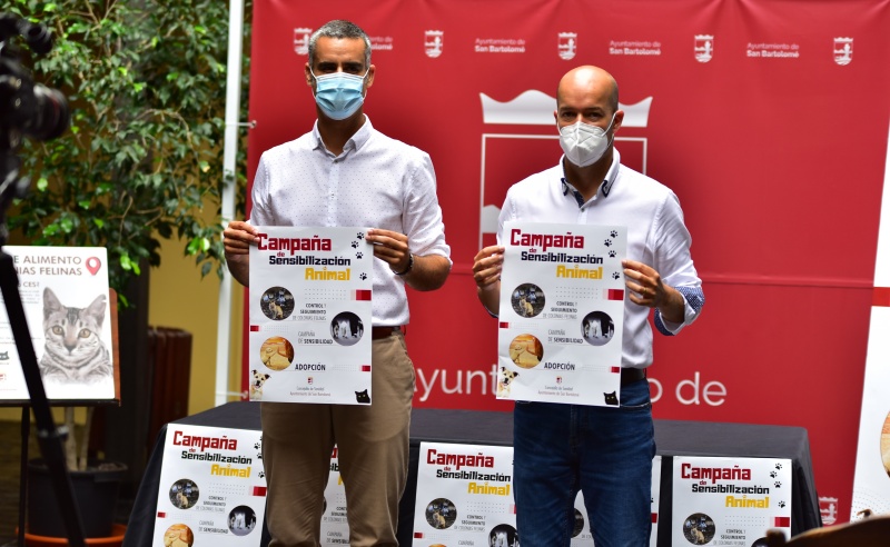 El Patio del Teatro de San Bartolomé acogió en la mañana de hoy la presentación de la Campaña de Sensibilización Animal”, contando con la presencia del alcalde, Alexis Tejera y el concejal de Sanidad, Raúl de León, que dieron a conocer las tres acciones centrales de este proyecto.