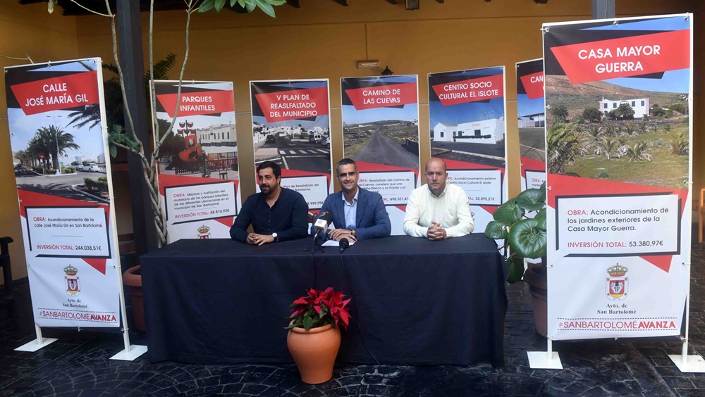 Se centraron en la presentación 7 obras, que suponen una inversión aproximada de 1.492.627,25€, y son el V Plan de Reasfaltado del Municipio 607.476,63€ + I.G.I.C, el reasfaltado del Camino de Las Cuevas 465.748,99€ + I.G.I.C., el acondicionamiento de la calle José María Gil 228.073,38€ + I.G.I.C., acondicionamiento de los exteriores de la Casa Mayor Guerra 49.888,76€ + I.G.I.C., el acondicionamiento exterior Centro Socio Cultural El Islote 49.434,78€ I.G.I.C., la ampliación, reforma y mantenimiento de marquesina en cancha de bola Güime 46.327,20€ + I.G.I.C. y obras de mejoras y sustitución de mobiliario en parques infantiles 45.677,51€ + I.G.I.C.