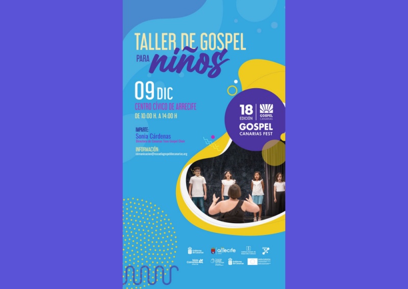 Impartido de 10 a 14 horas por Sonia Cárdenas, directora de la Canarias Teen Gospel Choir -coro de jóvenes y adolescentes de la Escuela Canaria de Gospel- está dirigido a niñas y niños de entre 7 y 15 años, y culminará con un concierto de sus participantes. Las inscripciones se realizan a través del enlace https://forms.gle/AMZNbpsJKUPtNQZWA.