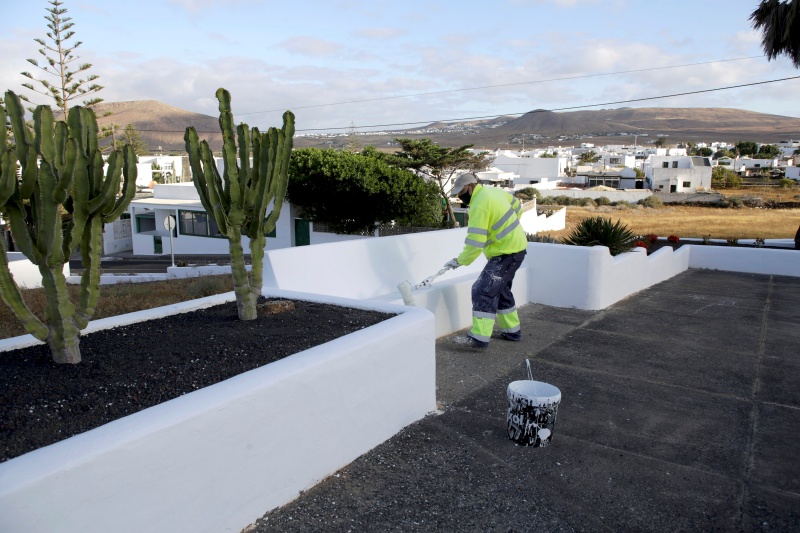 Además de las tareas de mantenimiento y embellecimiento de plazas, iglesias y zonas ajardinadas de los pueblos del municipio, parte del nuevo equipo de operarios, han sido destinados a obras de conservación en la isla de La Graciosa y reforma de infraestructuras, que se unirán también a la terminación del proyecto del centro sociocultural de la Octava Isla.