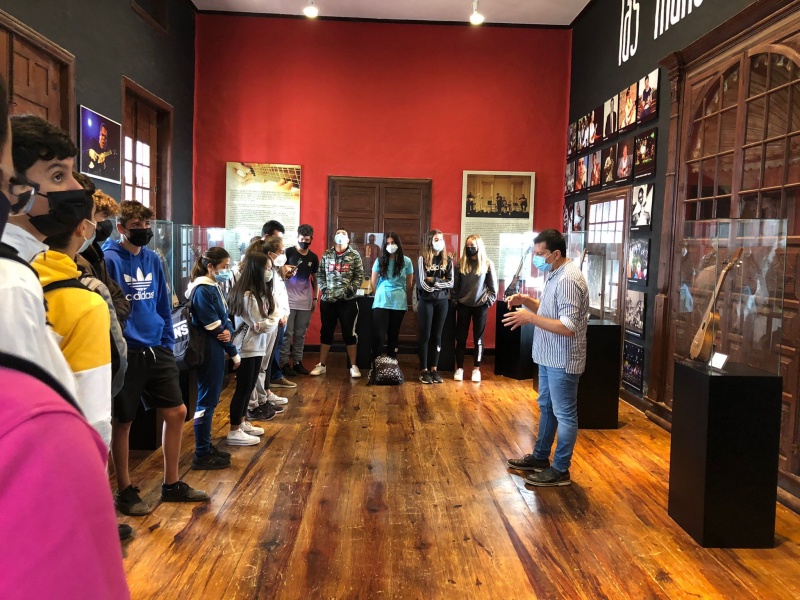 Este martes, 18 de mayo, Teguise celebró el Día Internacional de los Museos con una jornada de puertas abiertas en la que el comisario de la Casa-Museo del Timple, Benito Cabrera, guio al alumnado del CEIP Dr. Alfonso Spínola y del IES de la Villa por uno de los edificios más emblemáticos del Conjunto Histórico de la Villa, el Palacio Spínola, que desde 2011 alberga el único museo del mundo dedicado al instrumento canario.
