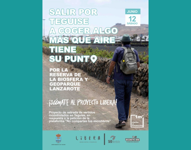 Como punto de partida, este sábado 12 de junio, Teguise y todas las asociaciones invitan a la población a salir al campo y retirar los residuos que encuentren y llevarlos al punto limpio más cercano, con el fin de actuar a todos los niveles para solucionar la problemática medioambiental que generan los residuos abandonados, sumándose así al proyecto Libera, organizado por Ecoembes y SEO Bird Life, que impulsa una gran recogida colaborativa nacional anual para liberar a la naturaleza de la basura que otros tiraron y no retiraron.