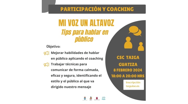 El Ayuntamiento de Teguise, a través de la concejalía de Participación Ciudadana, pone en marcha un nuevo taller formativo denominado "Mi voz un altavoz. Tips para hablar en público", destinado a fortalecer las habilidades de comunicación de la ciudadanía.