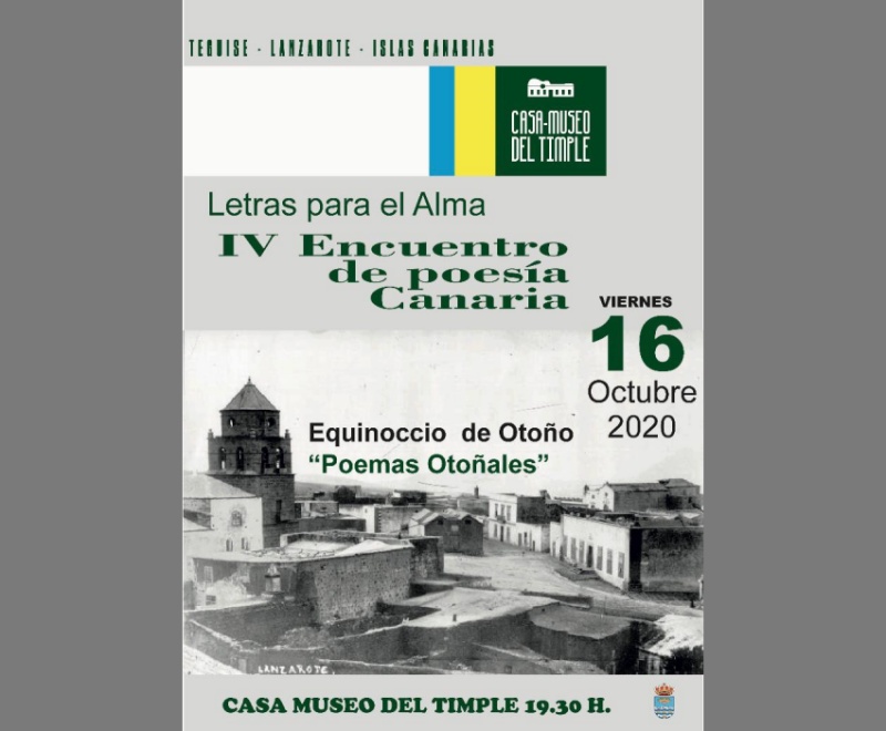 El IV Encuentro de Poesía Letras para el Alma dedica su nueva cita al equinoccio de otoño, a través de todos los poetas canarios que se inspiraron en esta estación del año para escribir sus obras y que hoy sirve de oportunidad para rescatar y fomentar la poesía a través de encuentros presenciales en los que participan narradores literarios que han escogido la Villa de Teguise como sede.