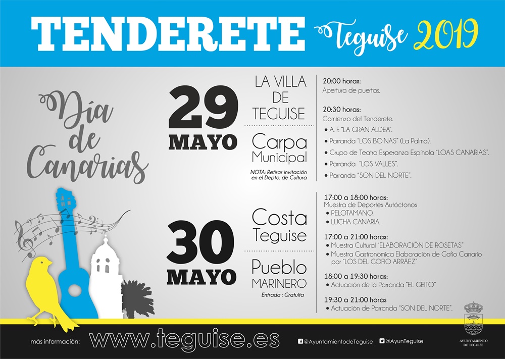 Ambos actos serán de entrada libre, pero para asistir al Tenderete de la Villa de Teguise será necesario retirar invitación previamente en la Casa de Cultura de la Plaza de la Constitución.