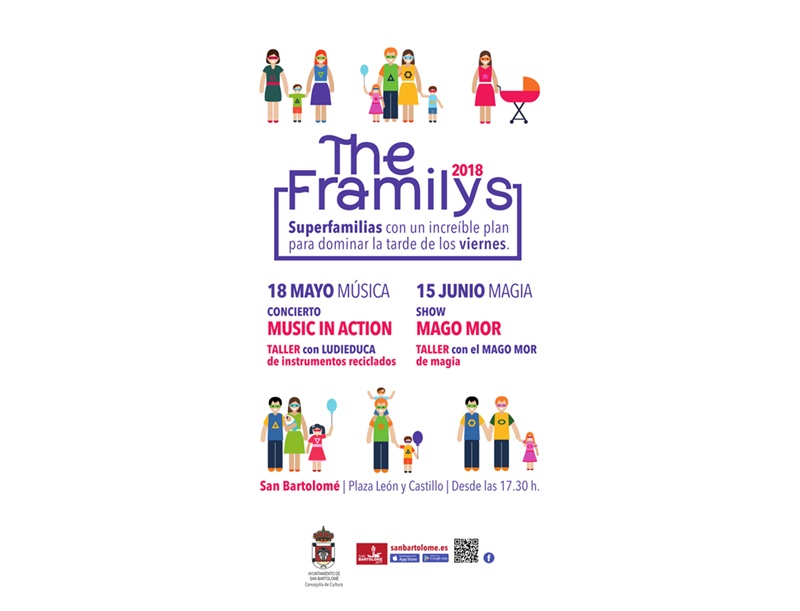 ‘The Framilys’ es una propuesta de ocio familiar con la que poder disfrutar el 15 de junio en la Plaza León y Castillo de San Bartolomé, organizada por las concejalías de cultura y educación y de bienestar social del Ayuntamiento de San Bartolomé, delegadas en Alma María González y Yésica Pérez, diseñando una programación con alto contenido pedagógico dirigido a las familias para que disfruten de espectáculos pensados especialmente para ellas. Acercar la música en directo, e instrumentos curiosos con un show dinámico y divertido, así como la magia, y las dos acciones apoyadas por talleres, es la esencia del The Framilys.