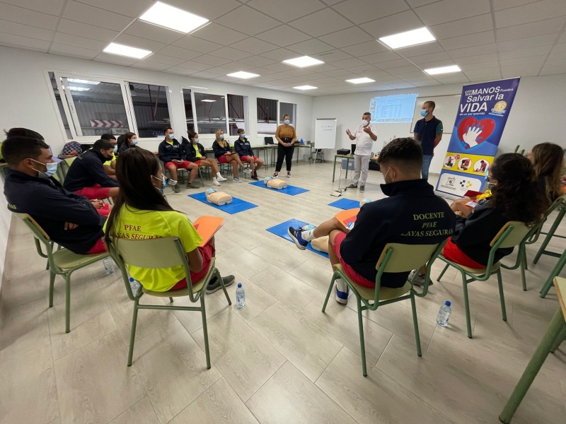 El alumnado del Plan de Formación en Alternancia con el Empleo (PFAE) "Playas Seguras" de Tías realizó hoy un curso homologado por el Plan Nacional de Reanimación Cardiopulmonar (RCP) y uso de desfibriladores, dentro la celebración en el municipio del Día de la concienciación ante la Parada Cardíaca.