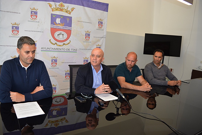 Tras la Mesa de Contratación, el alcalde de Tías, Pancho Hernández, acompañado por el teniente de alcalde, Amado Jesús Vizcaíno, y los concejales de Economía y Hacienda, Ramón Melián, y Deportes, Francisco Javier Aparicio Betancort, informó que el Ayuntamiento se acogerá a las nuevas determinaciones del Real Decreto Ley 1 /2018, donde se permite a las Corporaciones Locales saneadas destinar el superávit a este tipo de instalaciones, aspectos que hasta marzo impedía la normativa.
