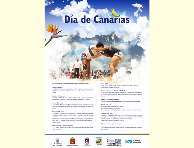 Los actos por el Día de Canarias ya se han estado celebrado desde este pasado fin de semana. Los principales serán este martes, día 29 de Mayo a las 21 horas con la luchada por el Día de Canarias en el Terrrero de Lucha Ulpiano Rodríguez Pérez, en Tías, donde los clubes Unión Sur Tías y Club de Lucha San Bartolomé confrontarán sus fuerzas sobre el terrero.