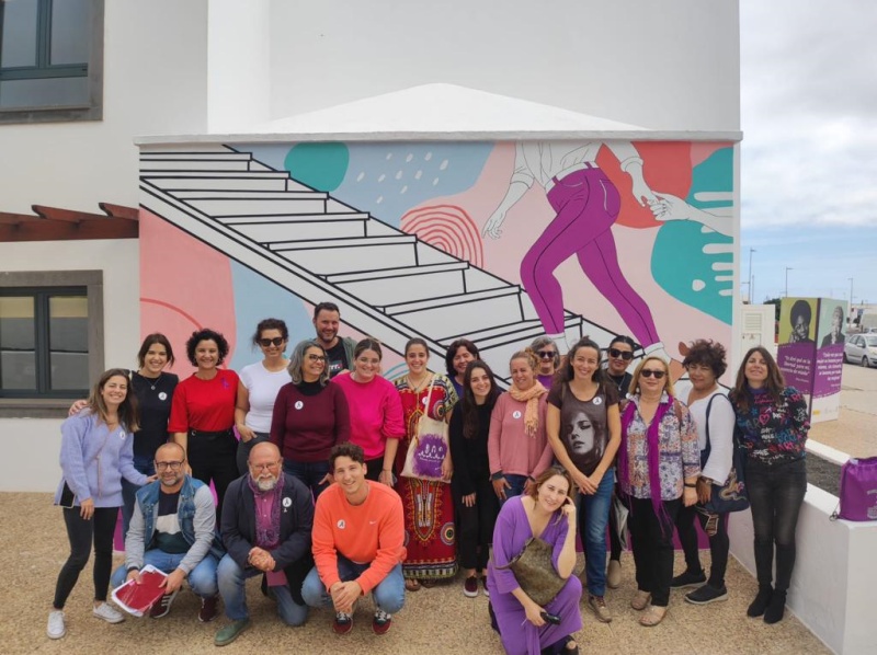 Estos días también se ha dado nombres simbólicos de mujeres del municipio a distintas calles aledañas a la Plaza del Ayuntamiento, se han pintado bancos violetas en cada pueblo y se ha creado un mural participativo diseñado por Jacobo Cáceres en el exterior del edificio de Servicios Sociales, en la Avenida Central de Tías.