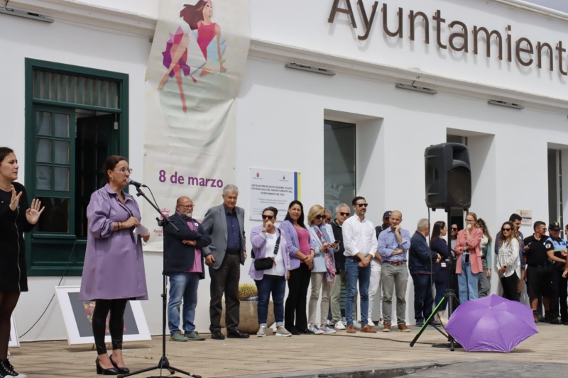 El Ayuntamiento de Tías ha celebrado hoy el Día Internacional de la Mujer con una muestra de obras pictóricas del artista Maxi Ferrer, incluidas en la serie Lanzarote es Mujer, y con la lectura del manifiesto por parte de Carmen Delia Reyes, integrante de la asociación Mararía. El acto contó con la interpretación en lengua de signos por parte de la asociación Apsal.
