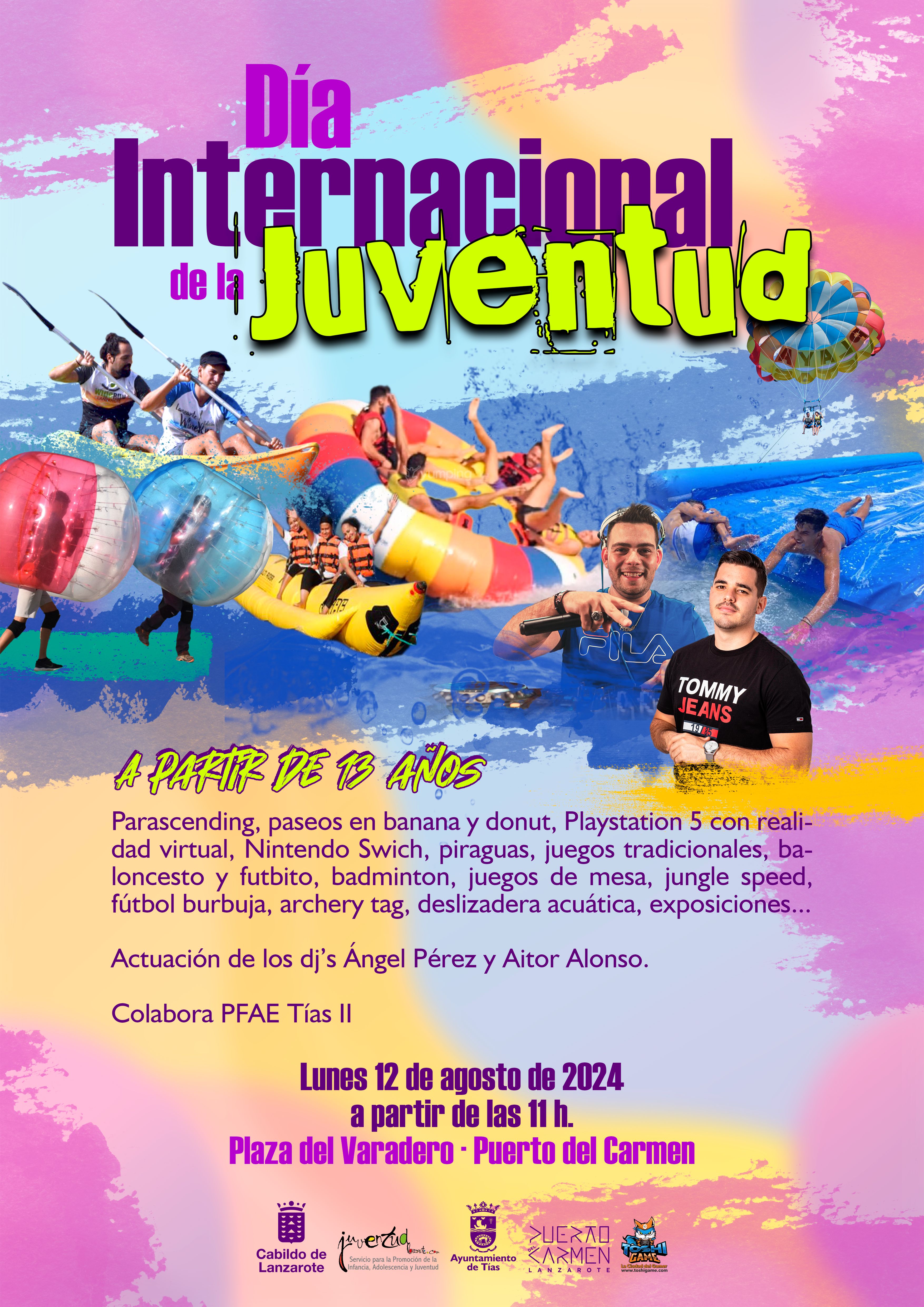 Los jóvenes del municipio de Tías tienen una cita con la celebración del Día Internacional de la Juventud que organiza el Ayuntamiento de Tías en la Plaza del Varadero, Puerto del Carmen, el lunes, 12 de agosto, a partir de las 11:00 horas.