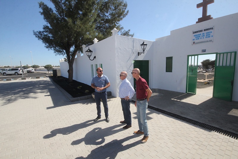 Desde este mes de noviembre el Cementerio de Tías tiene una nueva imagen exterior, modernizada y accesible con aceras adoquinadas y una gran extensión destinada a aparcamientos de vehículos. El alcalde de Tías, Pancho Hernández, acompañado por el teniente de alcalde, Amado Jesús Vizcaíno, y el concejal de Vías y Obras, Antonio Betancort Ramos, presentaron en el mediodía del lunes, 30, los trabajos concluidos donde el camposanto exhibe su nueva cara exterior.