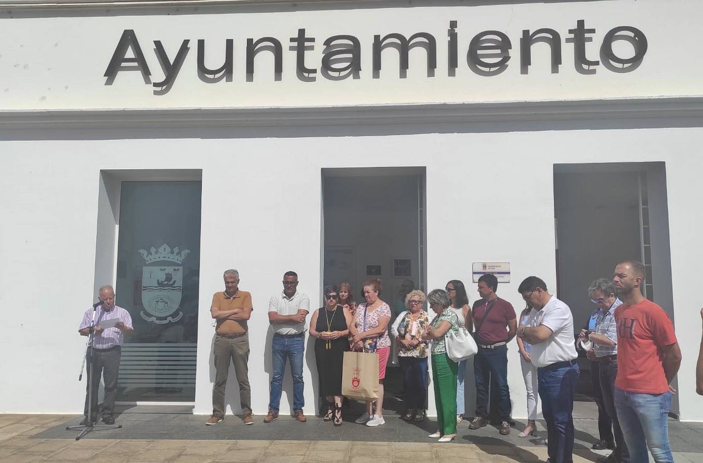 El alcalde, concejales y personal del Ayuntamiento de Tías se concentraron a las 11 de la mañana en la fachada de la Casa Consistorial, siguiendo las directrices de la FEMP.