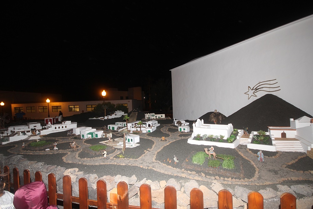 En el belén, bajo la dirección del operario municipal Luis Acuña, se han recreado todas las ermitas, plazas o casas típicas de todos los pueblos del municipio. La ermita de La Magdalena ( la primitiva y actual en Masdache), la iglesia del Sagrado Corazón de Jesús en Conil, las casas de Tegoyo, la iglesia de San Pedro y centro socio cultural de Mácher; la iglesia de San José y plaza de La Asomada, la iglesia patronal de La Candelaria, en Tías, y el puerto de La Tiñosa y la célebre Casa Roja, conjunto que forman parte del encanto actual de El Varadero, en la principal zona turística de Lanzarote, Puerto del Carmen.