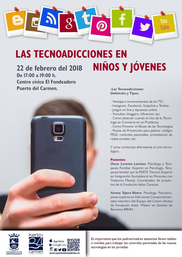 Las tecnoadicciones se están convirtiendo en una amenaza para menores y adolescentes. El Ayuntamiento de Tías ha invitado a la isla de Lanzarote a dos psicólogos destacados expertos para impartir unas jornadas formativas a las familias, sus padres y madres, y a los docentes y agentes que trabajen con adolescentes.