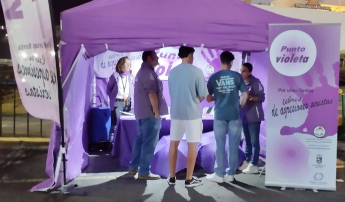 El objetivo del Punto Violeta, un puesto de información y concienciación sobre la seguridad de las mujeres que se instala en eventos multitudinarios como los conciertos y las verbenas, es proteger y dar soporte en los casos en que una mujer pueda sentirse acosada, presionada o víctima de cualquier tipo de agresión.