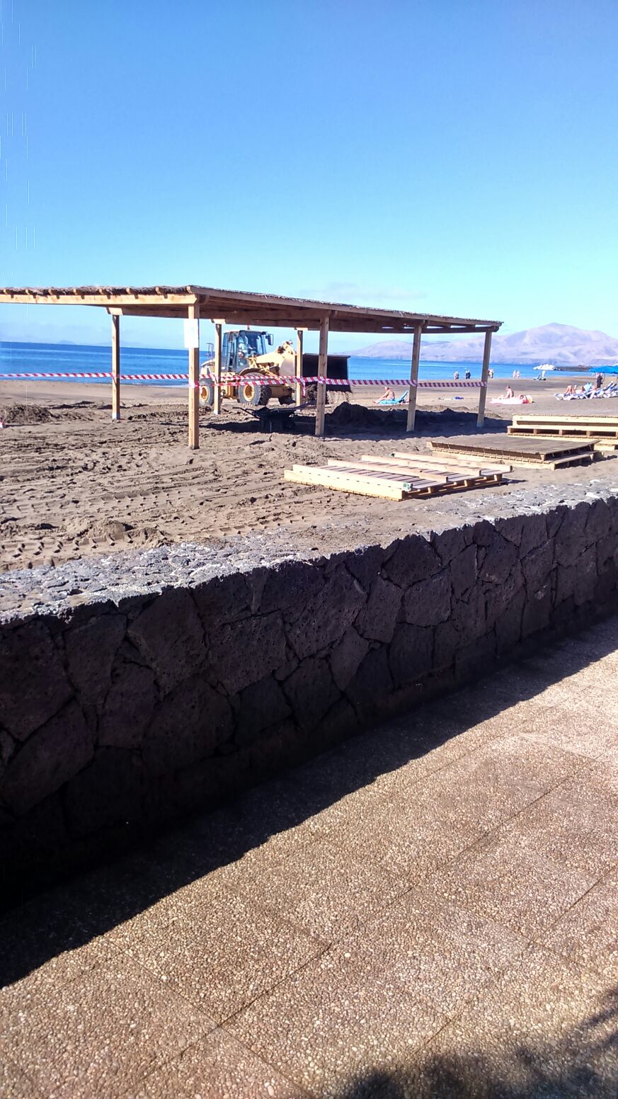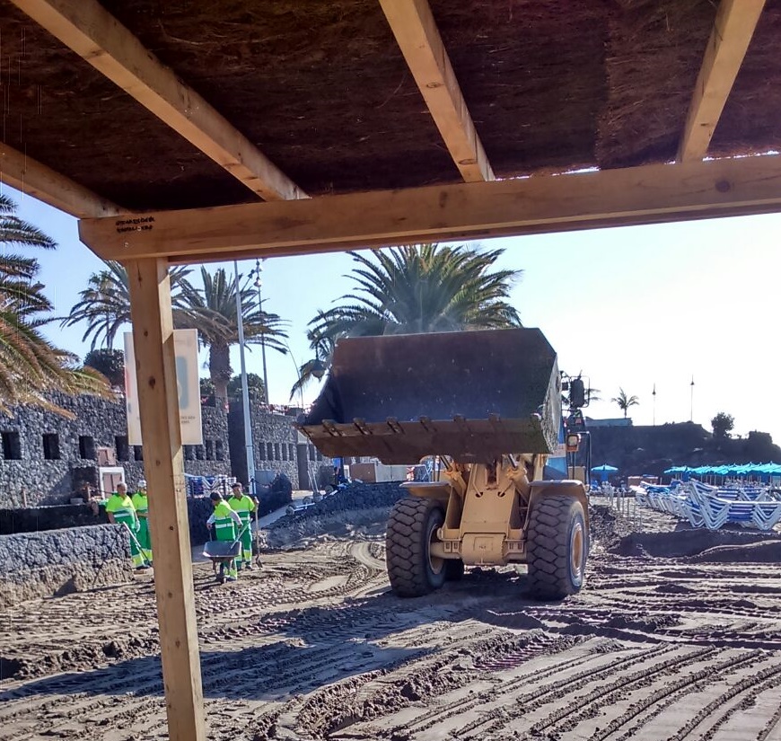 Tías repone el solarium de Playa Grande devastado por "Emma"