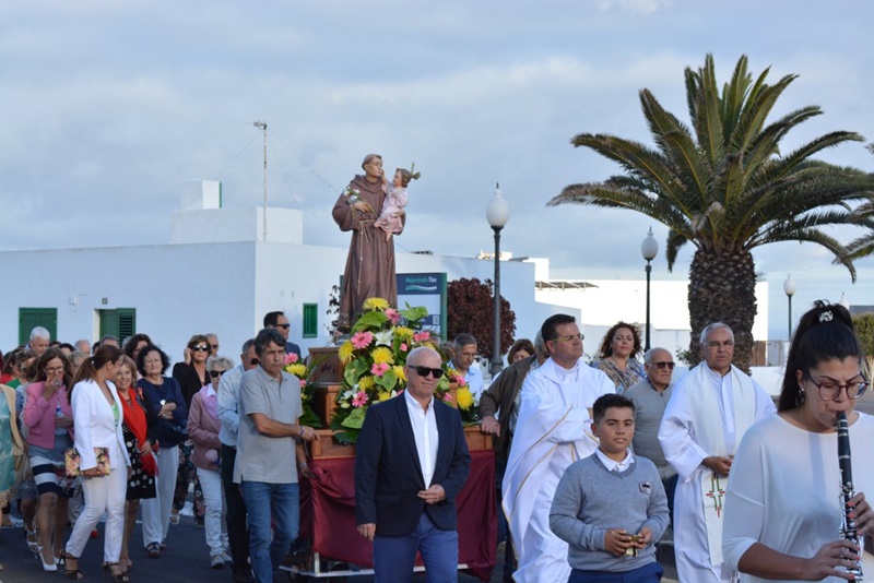 La solemne misa estará presidida por el párroco don Agustín Lasso, titular de la parroquia de Tías, que celebrará la Función y Procesión al santo patrón de los pobres y de las personas que buscan novio o novia, como recuerda la Iglesia. Este santo patrón, " San Antonio de Padua, Doctor de la Iglesia y patrono de los pobres, les enseña la belleza del amor sincero y gratuito", como lo hiciera el Pontífice en el Vaticano. Posteriormente la imagen del santo saldrá en procesión por la principal arteria del centro de Tías, la Avenida Central Alcalde Florencio Suárez. En esta vía se localiza la primitiva ermita de San Antonio- hoy centro cultural- y la iglesia nueva, construida en los años 60 del pasado siglo XX. Tras la procesión, como marca la tradición, se distribuirán panes y chocolate entre todos los asistentes, en estas fiestas de Tías,