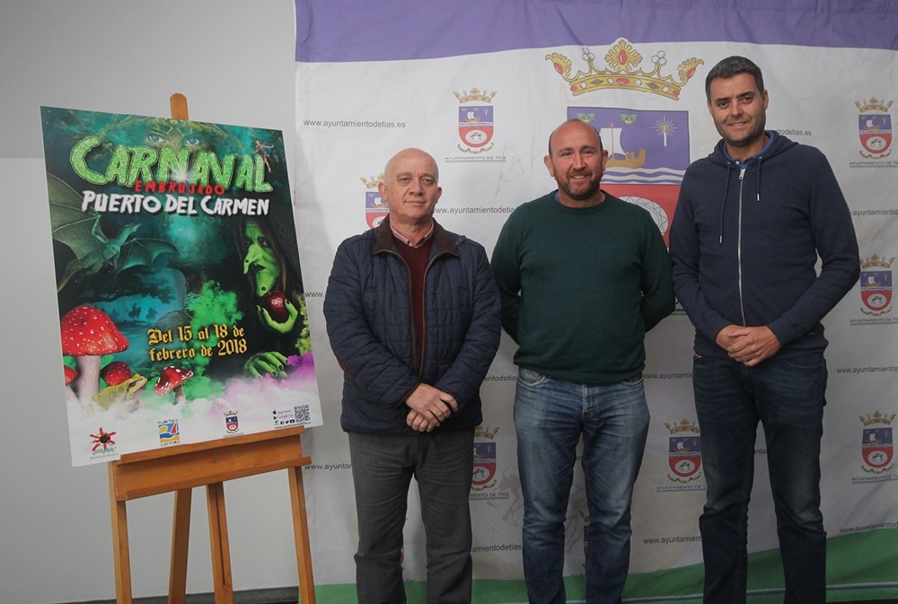 La principal zona turística de Lanzarote, Puerto del Carmen, ya tiene cartel anunciador de sus carnavales más internacionales. El Ayuntamiento de Tías ha presentado este lunes, en rueda de prensa, el cartel oficial de los Carnavales de Puerto del Carmen 2018. El mundo ' embrujado' es la alegoría que este año llenará la plaza de El Varadero, en La Tiñosa, y la Avenida de las Playas, durante el gran coso que desfilará el próximo sábado 17 de febrero.