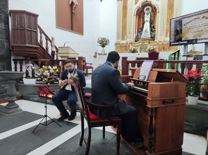 El programa se cerraba con un concierto muy especial pues los presentes pudieron disfrutar en presencia de Nuestra Señora de Los Dolores del primer concierto de la historia de timple y armonio.