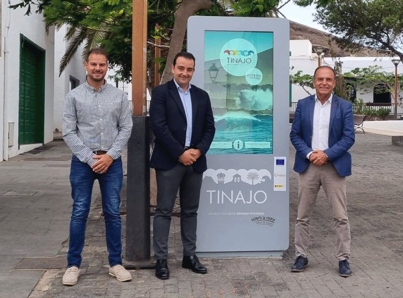 El Ayuntamiento de Tinajo ha instalado tres dispositivos digitales con información turística y comercial para dinamizar el tejido comercial y fomentar el consumo de los turistas en el municipio. El presidente de la Cámara de Comercio de Lanzarote y La Graciosa, José Valle; el alcalde del municipio, Jesús Machín, y el concejal de Comercio, Vianney Rodríguez, han inaugurado los nuevos paneles informativos en una clara apuesta por la digitalización.