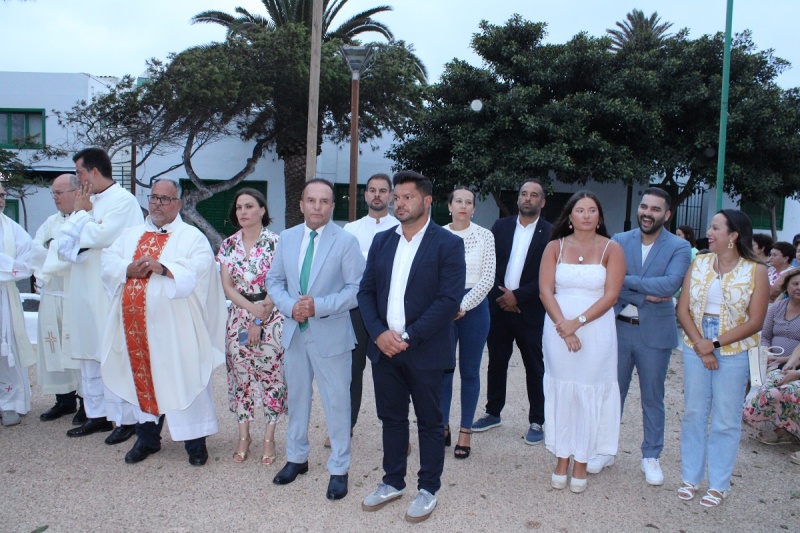 La procesión transcurrió con total corrección y respeto a San Roque con los religiosos en cabeza tras la banda municipal, seguidos por el alcalde de Tinajo, Jesús Machín, y el grupo de gobierno de Tinajo junto al consejero cabildicio, Jesús Machín y la parlamentaria conejera, Migdalia Machín.