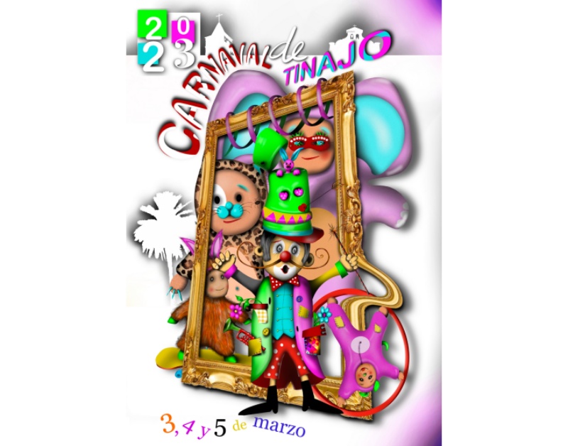 La concejalía de Festejos del Ayuntamiento de Tinajo ya cuenta con el cartel del Carnaval 2023, que tendrá lugar los días 3, 4 y 5 de marzo. La obra ha sido elegida por varios jurados, que se han decantado por la presentada por Sergio Vicente Rodríguez, que se titula "Dónde está el espejo?" representando como temática a domadores de circo.