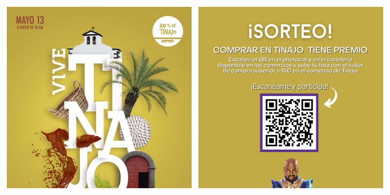 Sorteo de un viaje a Madrid.- Del 6 al 13 de mayo, todas las personas que efectúen una compra de al menos 15 euros en algún establecimiento comercial minorista de Tinajo entrarán en un sorteo de un viaje a Madrid de dos días, con hospedaje, y dos entradas para disfrutar del musical de Aladdin. Además, también es válida la compra de productos en los establecimientos participantes en la ruta de la tapa del día 13.