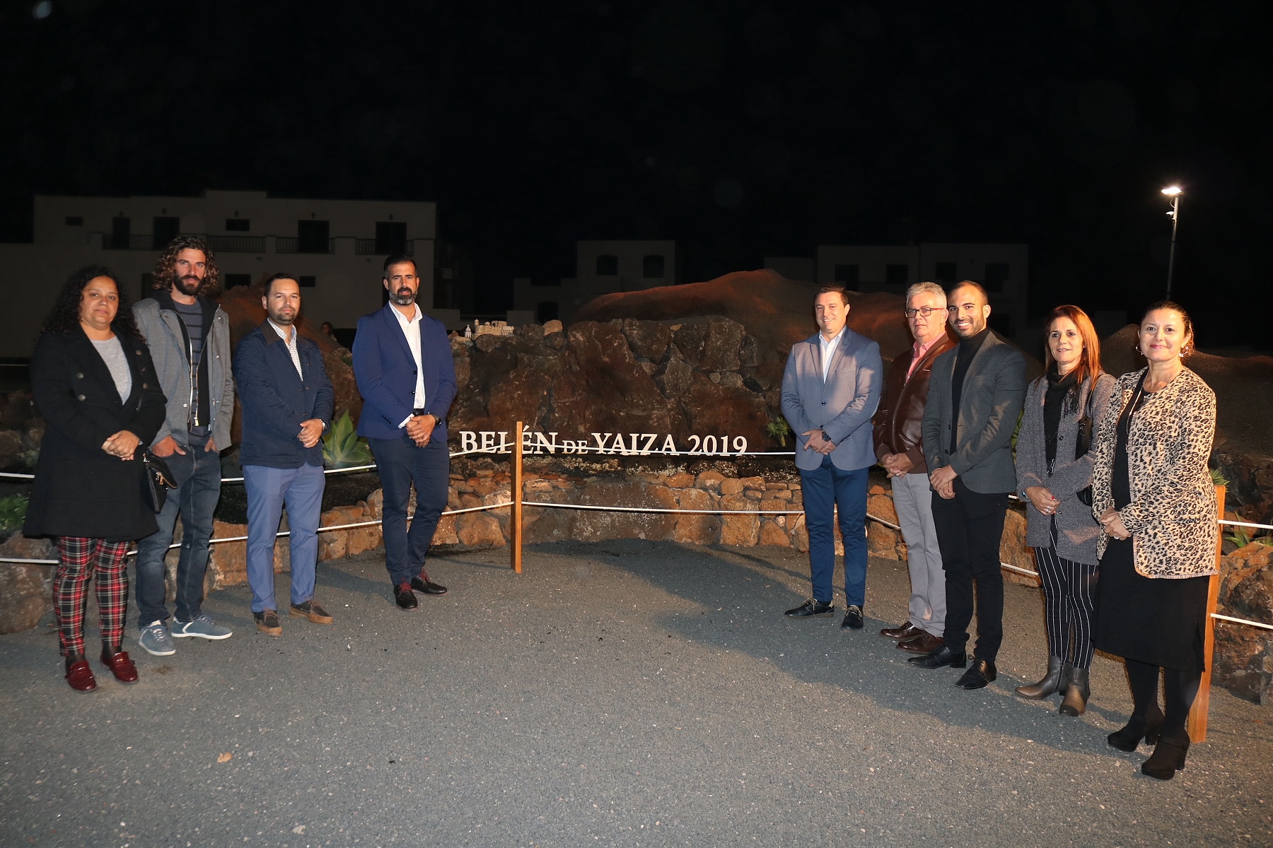 El alcalde de Yaiza, Óscar Noda, acompañado de concejales del grupo de gobierno, ensalzó la dedicación que ha supuesto la construcción del Belén municipal dirigido este año por el diseñador Alexander Dorta: "cada obra artística tiene un artífice o unos artífices, como es el caso de esta creación colectiva, así que quiero destacar la creatividad, compromiso y el denodado trabajo de todos y cada uno de los miembros del equipo; el diseñador, Alexander Dorta, y más de diez operarios municipales, entre palistas, albañiles, electricistas y fontaneros. En nombre del municipio, gracias de verdad por regalarnos esta obra que nos enorgullece". Óscar Noda llamó a los operarios presentes para que el reconocimiento del público.
