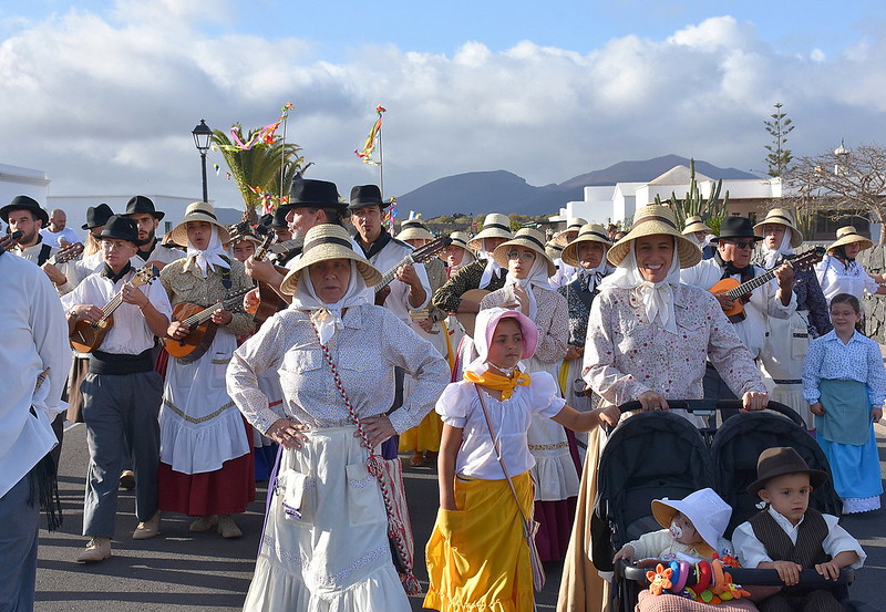 El pueblo de Uga celebró este sábado su romería ofrenda a San Isidro Labrador congregando a decenas de vecinos, vecinas y visitantes alrededor del Santo Patrono en un alegre recorrido por las calles del pueblo que estuvo visiblemente engalanado por el buen hacer de una docena de grupos de toque y baile de Lanzarote, la invitada Agrupación Folklórica Noreste Guiense de Gran Canaria, espontáneos parranderos que no cesaron de cantar, carros de tracción animal cuidadosamente decorados por romeras y romeras y la infaltable figura del camello, en una localidad que posee la cabaña camellar más importante de Europa y donde el sustento de unas cuarenta familias depende de los paseos a turistas a lomo de camello en Timanfaya.