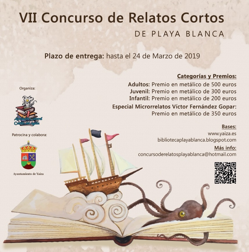 La Asociación Cultural Castillo del Águila y el Ayuntamiento de Yaiza recuerdan a los escritores de la Isla que tienen escasos días para enviar sus obras al Concurso de Relatos Cortos de Playa Blanca 2019. La fecha límite de entrega, tanto para relatos cortos como para microrrelatos, es el domingo 24 de marzo y se realizará mediante el envío de un archivo de texto adjunto remitido al correo