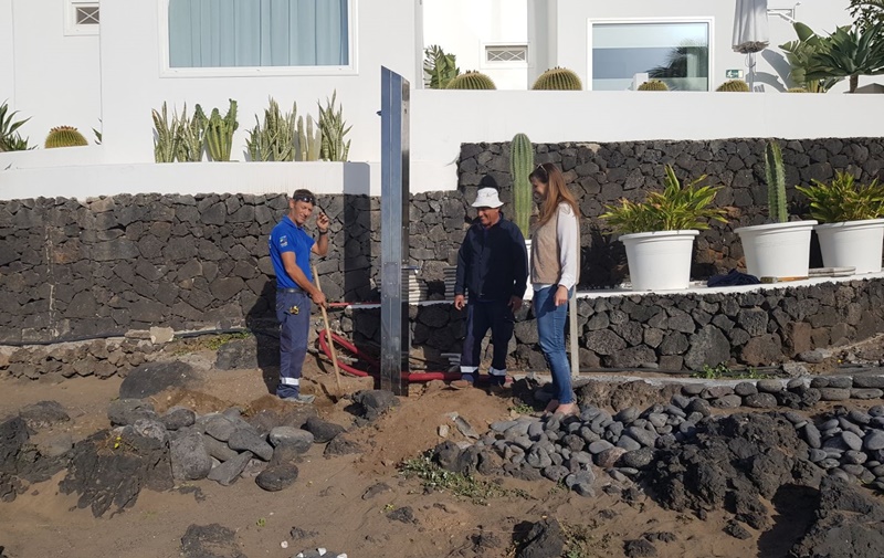Todas las playas de Tías actualmente disponían de servicios de lavapiés que se está mejorando con la instalación de estas nuevas duchas demandadas por los usuarios de las playas y los agentes vinculados con el sector turístico.