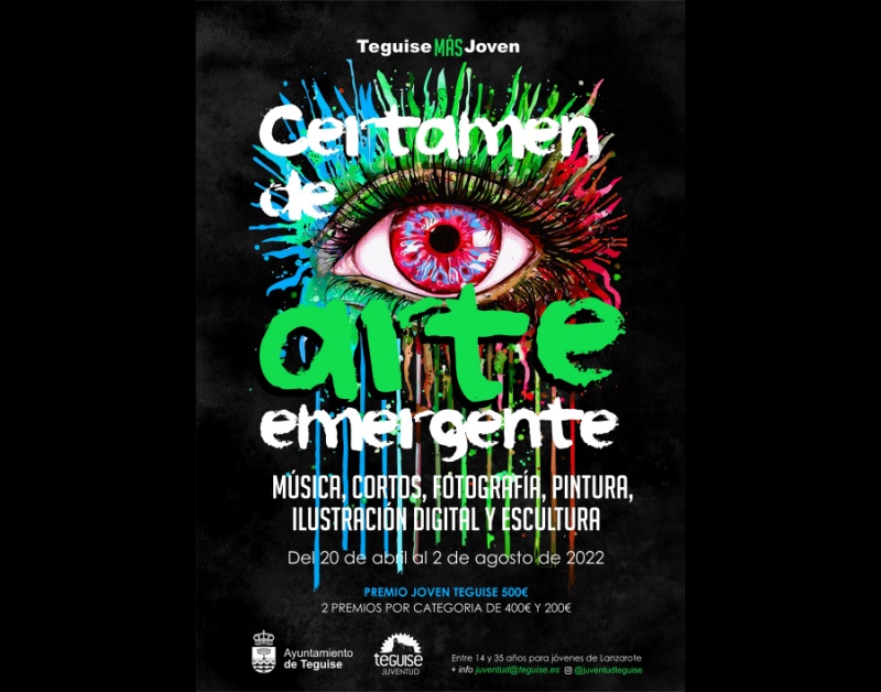 Teguise apuesta un año más por el Certamen de Arte Emergente como apoyo e impulso al talento juvenil destinado a jóvenes creadores de entre 14 y 35 de Lanzarote, promoviendo en esta edición 2022 las categorías de música, cortos, fotografía, pintura, ilustración digital y escultura, además del Premio Joven Teguise.