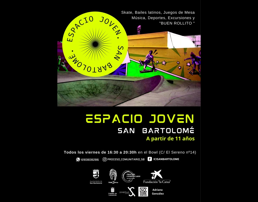 El Espacio Joven está organizado desde Concejalía de Intervención Comunitaria del Ayuntamiento de San Bartolomé con la gestión de la Asociación Cultural y Social TribArte y cuenta con la colaboración del Cabildo de Lanzarote, Concejalía de Juventud de San Bartolomé, Fundación Bancaria "la Caixa", Extreme Center y Adriana González.