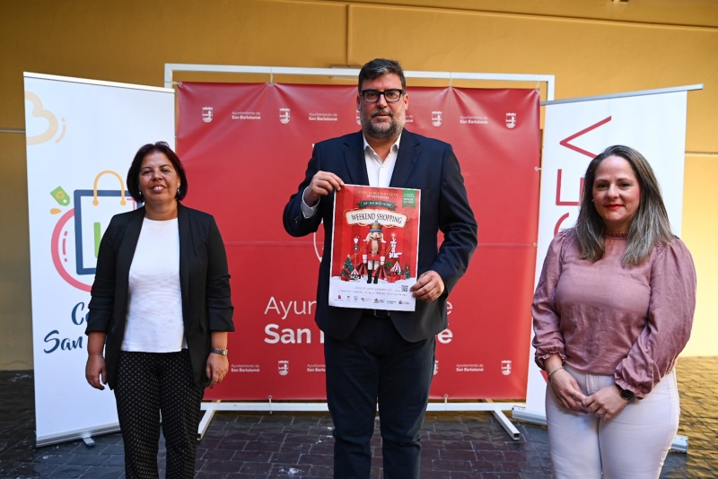El Ayuntamiento de San Bartolomé, presentó esta mañana, en el patio central del Teatro Municipal, la XIII edición de 'San Bartolomé Weekend Shopping'. Este evento se llevará a cabo entre el 9 y el 10 de diciembre y contará con una atractiva programación para dinamizar el comercio local a través de ludotecas, concurso de escaparatismo, talleres variados para todas las edades, danza, parranda navideña, show de magia, recogida de juguetes para los más pequeños,, teatro callejero y show de circo.