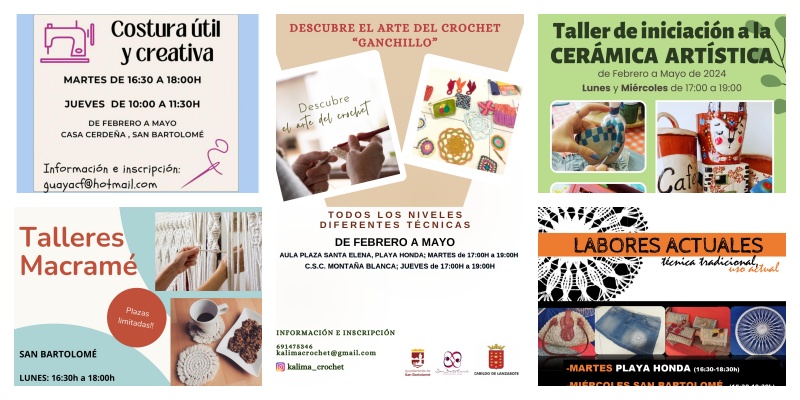 El Ayuntamiento de San Bartolomé mantiene su apuesta por la tradición y retoma los talleres de artesanía. Estos abarcan las diversas disciplinas de costura útil y creativa, macramé, labores actuales 'técnica tradicional, uso actual', cerámica y crochet. Después de las exitosas clases llevadas a cabo en octubre y noviembre de 2023, los talleres se reanudarán el 1 de febrero y se celebrarán hasta el 31 de mayo.