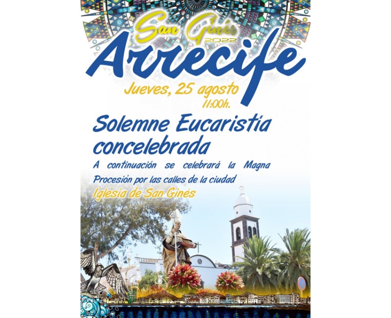El municipio de Arrecife vive este jueves, 25 de agosto, su día grande con la festividad de su patrono, San Ginés. Por este motivo, a partir de las 11.00 horas, la Iglesia de San Ginés acogerá una solemne eucaristía concelebrada que será presidida por Monseñor Cristóbal Déniz Hernández, Obispo Auxiliar de Canarias.