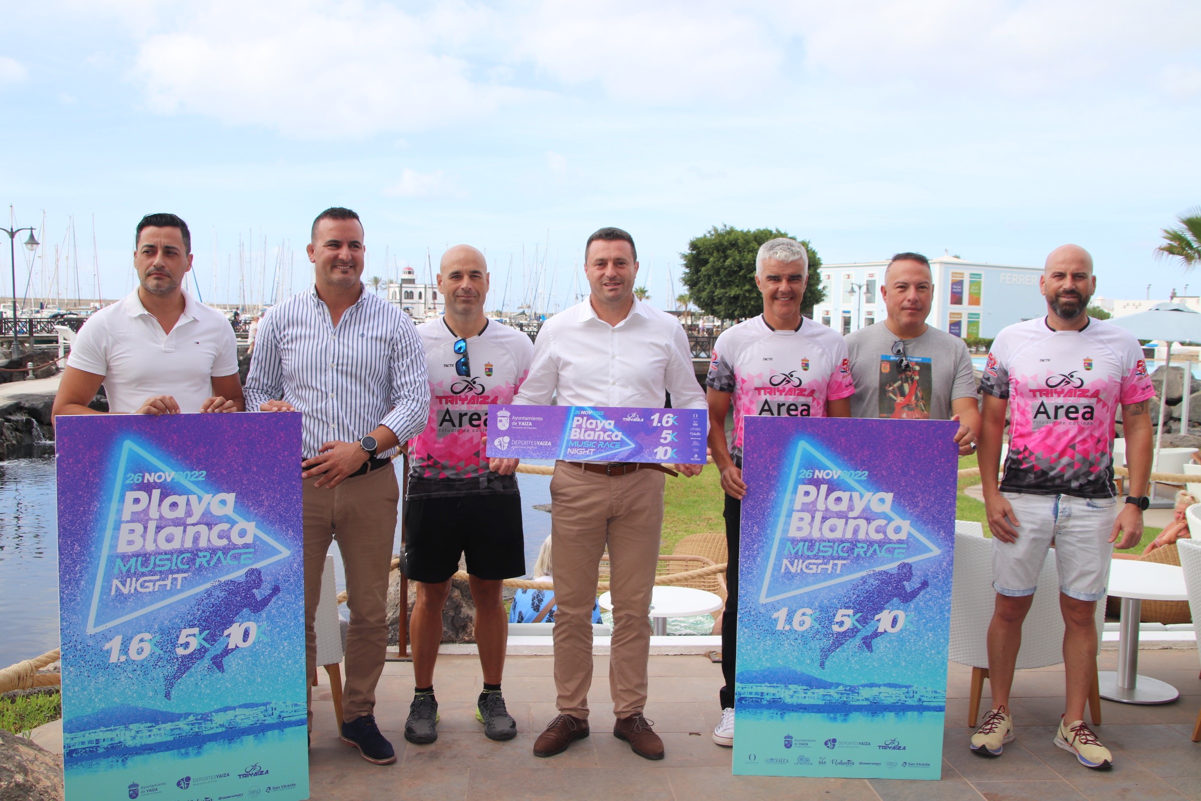 Responsables del Ayuntamiento presidido por Óscar Noda y miembros del Club Deportivo Triyaiza presentaron este jueves en el bar restaurante Oasis Marina Bay la segunda edición de la Playa Blanca Music Race Night, carrera a pie que reserva la noche del sábado 26 de noviembre de 2022 ya no solo para competir en las distancias de una milla, 5 y 10 kilómetros, sino que convoca a residentes y turistas al disfrute de un evento integrador y popular capaz de mezclar deporte, música en vivo, dj y luces multicolor. Las inscripciones ya están abiertas en la web www.tripasioneventos.com