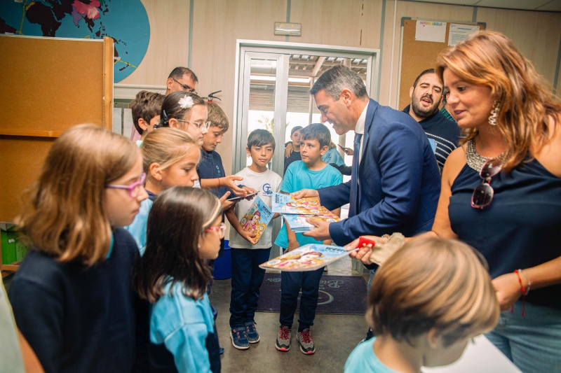 El alcalde de Teguise, Oswaldo Betancort, acompañado por las ediles Olivia Duque y Sara Bermúdez, junto a los concejales de Educación, Javier Díaz, y de Turismo, Antonio Callero, visitaron el Ceip Costa Teguise para entregar a su alumnado la publicación diseñada, especialmente, para dar a conocer, de una forma dinámica y atractiva a los niños y niñas, la historia de Costa Teguise como enclave turístico emblemático en sus primeros 50 años de vida.