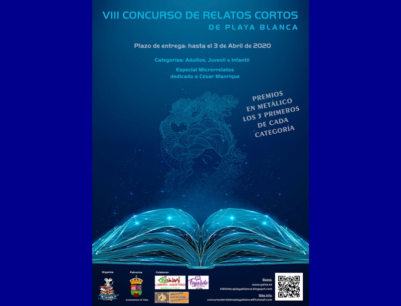 La Asociación Cultural Castillo del Águila recuerda a los aficionados a la escritura residentes en Lanzarote que todavía disponen de casi un mes de plazo para presentar sus propuestas al Concurso de Relatos Cortos de Playa Blanca 2020, certamen que pretende estimular la literatura creativa en la Isla y que cuenta con las modalidades de Relato Corto, en la que se participa según la edad en la categoría infantil, juvenil o adulto, y Microrrelato, que este año está dedicada a la figura de César Manrique y en la que todos compiten en una única categoría pudiendo hacerlo en prosa o en verso.