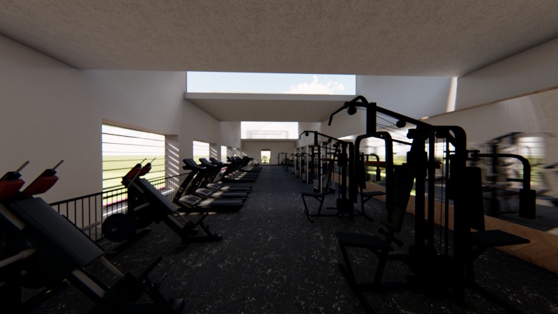 Una vez concluido el proceso de diseño se ha establecido que el gimnasio dispondrá de dos plantas, añadiendo una a la ya existente. La planta principal, en la planta baja, se dedicará al entrenamiento con aparatos y al deporte funcional. Mientras que en la segunda planta, el proyecto plantea la creación de cinco salas multiusos que se destinarán a distintas actividades monitorizadas como spinning o pilates.