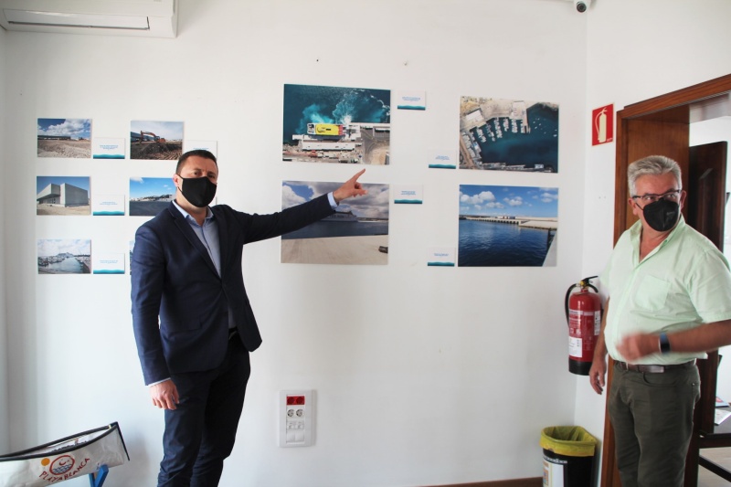 El alcalde de Yaiza, Óscar Noda, sostiene que "acordamos con Puertos Canarios abrir esta nueva ventana divulgativa para que residentes y turistas conozcan mejor la dimensión y evolución de una obra trascendental para la economía y el desarrollo del municipio y de Lanzarote que supone un inversión de más de 40 millones de euros". Óscar Noda y el concejal de Turismo, Ángel Domínguez, estuvieron en la Oficina de Turismo observando la muestra.