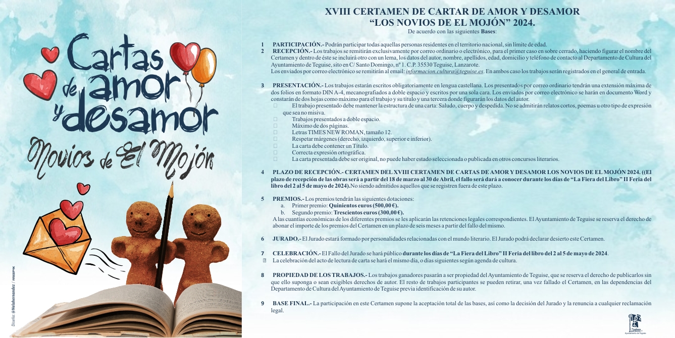 El Ayuntamiento convoca además una nueva edición del Certamen de Cartas de Amor y Desamor 'Los Novios Del Mojón'. Se trata de un concurso para escritores principiantes en donde escribirán cartas de amor en honor a esta pareja de aborígenes popular en Lanzarote.