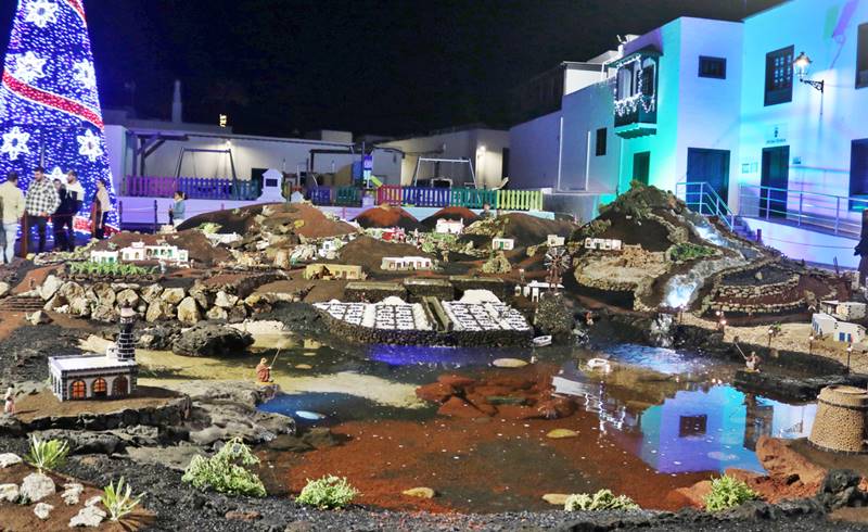 Con una extensión de 180 m2, la obra recrea este año los lugares más emblemáticos de nuestro municipio, pudiendo reconocer las principales localidades y parajes únicos como Salinas de Janubio, Montañas de Fuego con géiser incluido, Los Ajaches o La Geria. Entre las novedades destaca el Mirador del Charco de los Clicos, con vista privilegia para admirar y adorar al niño Jesús.