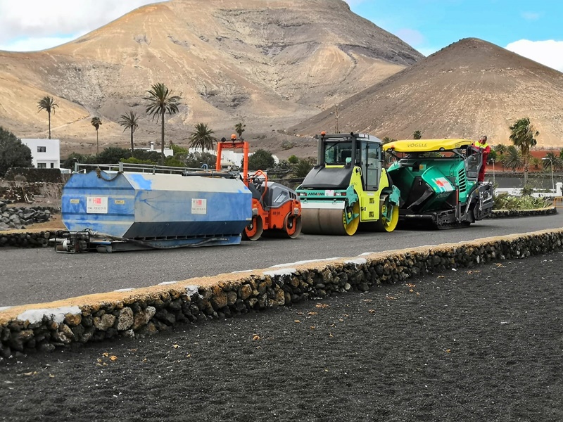 Yaiza asfalta la calle La Orilla