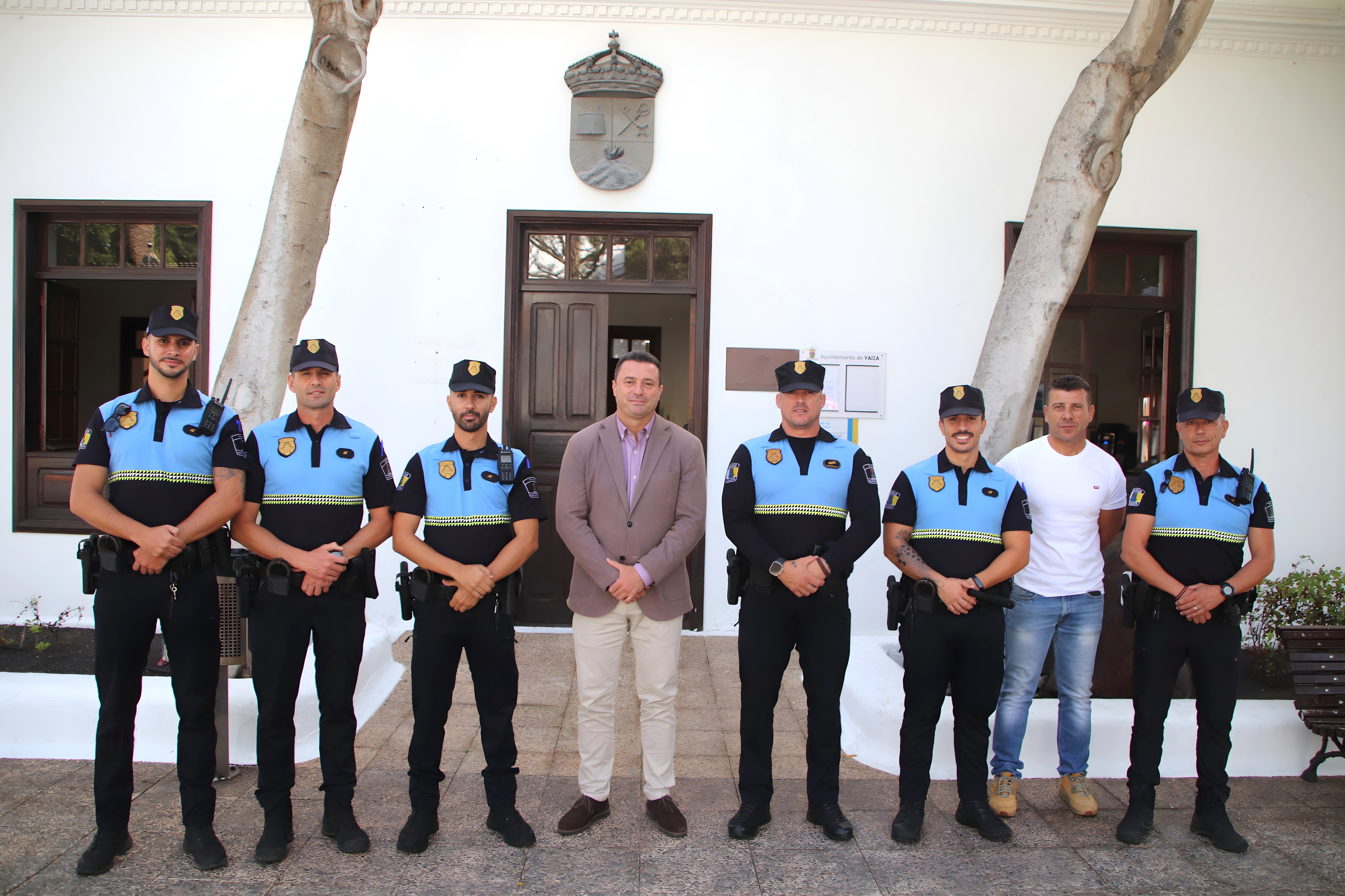 Óscar Noda ya avanzó ese mismo día que Yaiza licitará cien cámaras de vigilancia para distintas localidades del municipio y dio cuenta de los cuatro agentes que se han incorporado ahora. Los nuevos agentes se presentaron este miércoles en compañía del oficial jefe de la Policía Local, Vladimir Guadalupe, y dos policías que forman parte de la plantilla del Cuerpo, uno de ellos, enlace sindical.