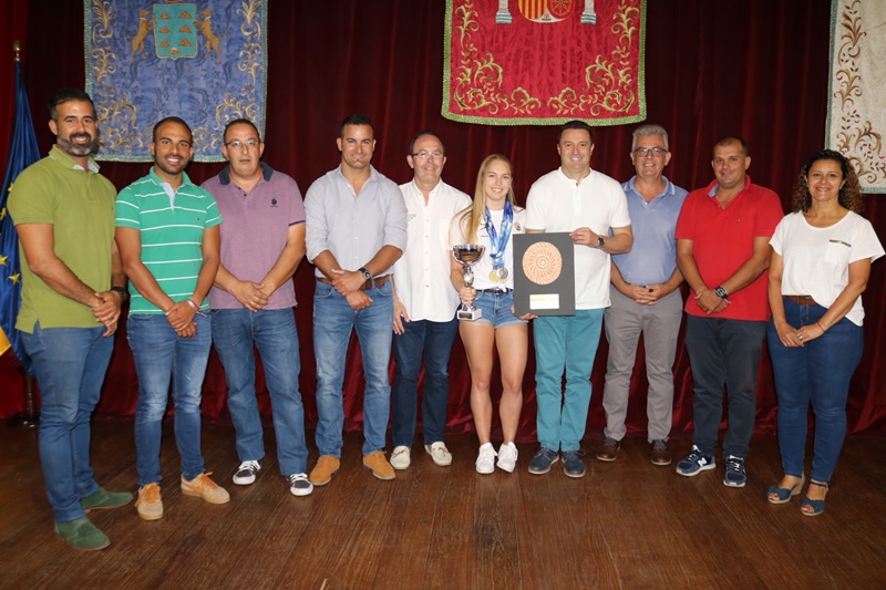 Óscar Noda y Ángel Lago han felicitado a Bonnie Godino en su nombre y en el de toda la Corporación, animándole a seguir cosechando triunfos tanto a nivel deportivo como en sus estudios y destacando que es 'un gran ejemplo para nuestros jóvenes', ya que demuestra que el deporte de alto nivel no está reñido con los estudios y que 'con esfuerzo y dedicación se puede compatibilizar y ser el mejor en ambas'.