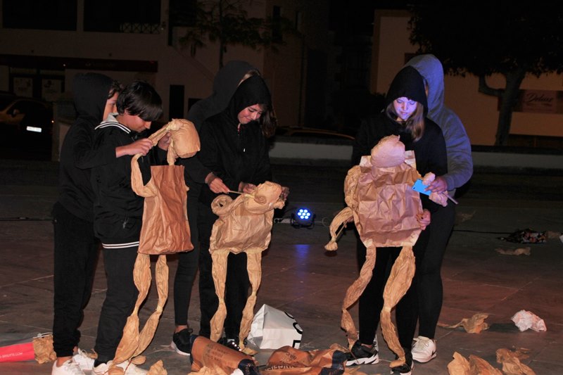 La Escuela de Teatro de Yaiza hizo este jueves su primera presentación pública en la Plaza del Carmen de Playa Blanca escenificando 'Mi mejor regalo', una obra experimental de calle, sin diálogos, que dirige Siscu Ruz soportada íntegramente en el lenguaje corporal de treinta actores y la interpretación en vivo del músico Israel Curbelo (teclado y cajón).